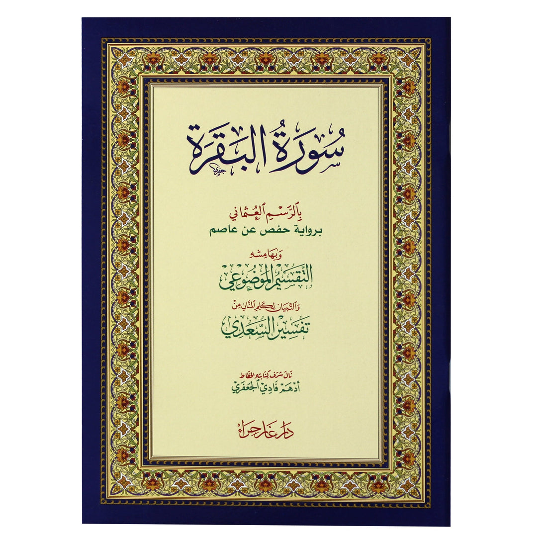 سورة البقرة غلاف مخمل سماوي طباعة ذهبي 8x12بالرسم العثماني سورة البقرةالكتاب من أفضل كتب التفسير؛...